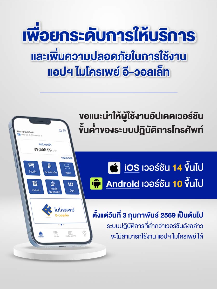ไมโครเพย์ อี-วอลเล็ท โฉมใหม่ มาพร้อมฟังก์ชั่นที่ตอบโจทย์พ่อค้าแม่ค้ามากขึ้นกว่าเดิม